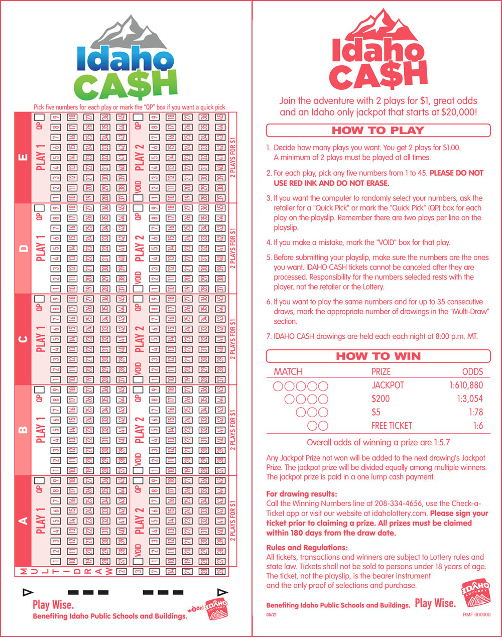 Idaho Cash tickets cannot be canceled after they are processed. Responsibility for the numbers selected rests with the player, not the retailer or the Lottery.