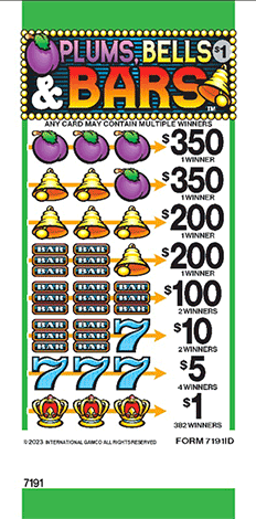 Pull open the tabs to reveal symbols. Get any 3 winning symbols as shown in the prize legend and win the prize shown. Win up to $350. All PullTab prizes must be claimed at the location of play on the day of play.
