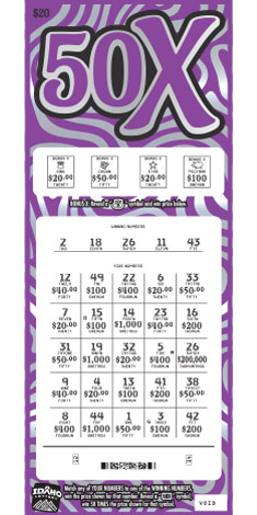 Reveal a "50X" symbol, win 50 TIMES the prize shown for that symbol.