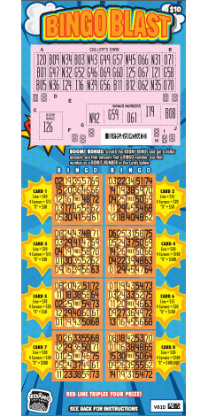 BOOM! BONUS: Scratch the BOOM! BONUS and get a dollar amount, win that amount. Get a BINGO number, use that number as a BONUS NUMBER in the BINGO Cards 1-8.
