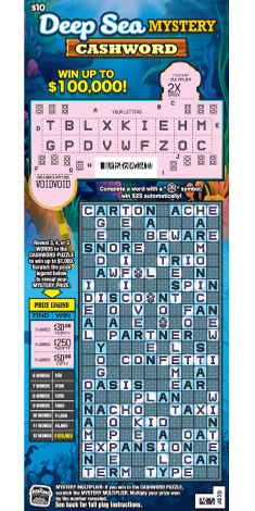 MYSTERY MULTIPLIER: If you win in the CASHWORD PUZZLE, scratch the MYSTERY MULTIPLIER. Multiply your prize won by the number revealed.