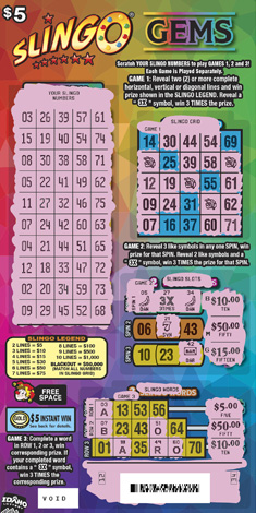 Scratch YOUR SLINGO NUMBERS to play GAMES 1, 2 and 3! Each game is played separately.